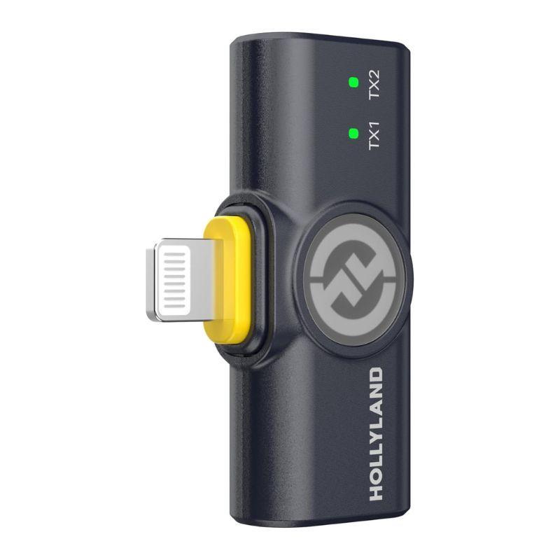 Como parte del sistema inalámbrico Hollyland LARK M2, este receptor inalámbrico LARK M2 de color carbón brillante con conector Lightning funciona junto con su dispositivo compatible con iOS para grabar audio mejorado.