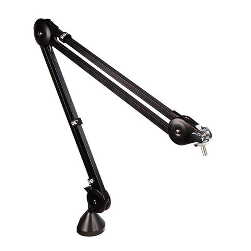 El brazo articulado Rode PSA1 Studio Boom Arm es un brazo articulado para micrófono de transmisión de dos secciones con resorte, diseñado para una colocación de micrófono silenciosa y flexible en estudios de radio, estudios de doblaje, etc. El PSA1 gira 360 grados y tiene un alcance máximo de 820 mm (32") horizontalmente.