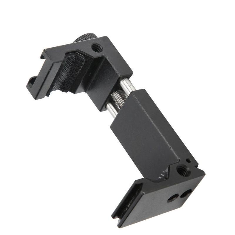 Tanto el soporte superior como el inferior pueden acomodar un trípode, monopié, palo para selfies u otro dispositivo de filmación con una conexión de 1/4-20.