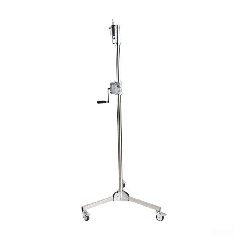 Dado que este tipo de luces suele ser muy pesado, este soporte cuenta con una manivela de engranajes para subirlo y bajarlo fácilmente. Gracias a su robusta construcción de acero inoxidable y a su columna central de 40 mm, soporta cargas de hasta 20 kg, lo que lo hace ideal para este tipo de luces. Además, cuenta con dos soportes de elevación que le permiten extenderse hasta 230 cm de altura, junto con su gran diámetro de 145 cm, para garantizar la máxima estabilidad. Perfecto para usar en cualquier estudio de radiodifusión y televisión, así como en sets de producción cinematográfica independiente más pequeños.